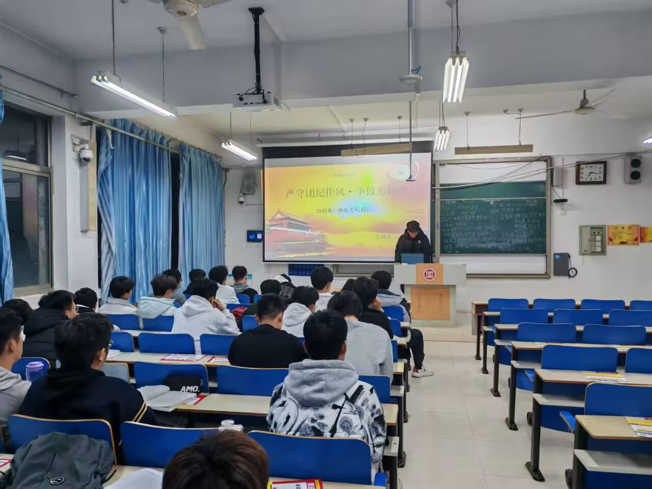 活动中,各支部带领团员深入研读团章中关于纪律与作风的重要论述,并通过专题分享,学习了科技创新、志愿服务等领域优秀青年的先进事迹。在随后的讨论环节,同学们围绕“如何以团纪为尺规范言行”积极发言,结合校园生活与个人成长经历交流体会。优秀团员代表分享了参与公益服务、备战学科竞赛的实践经验与感悟,以生动事例诠释团员责任,鼓励大家将纪律要求落细落实,在日常中践行团员标准。